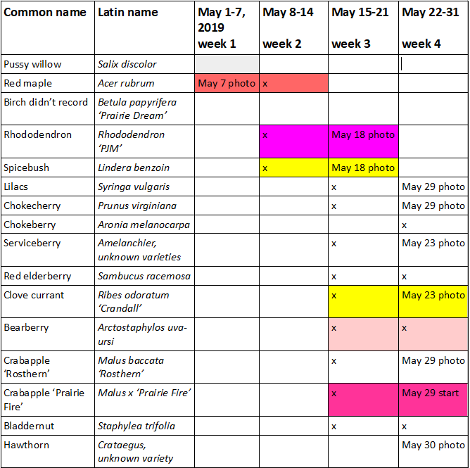 May 2019 trees and shrubs in bloom