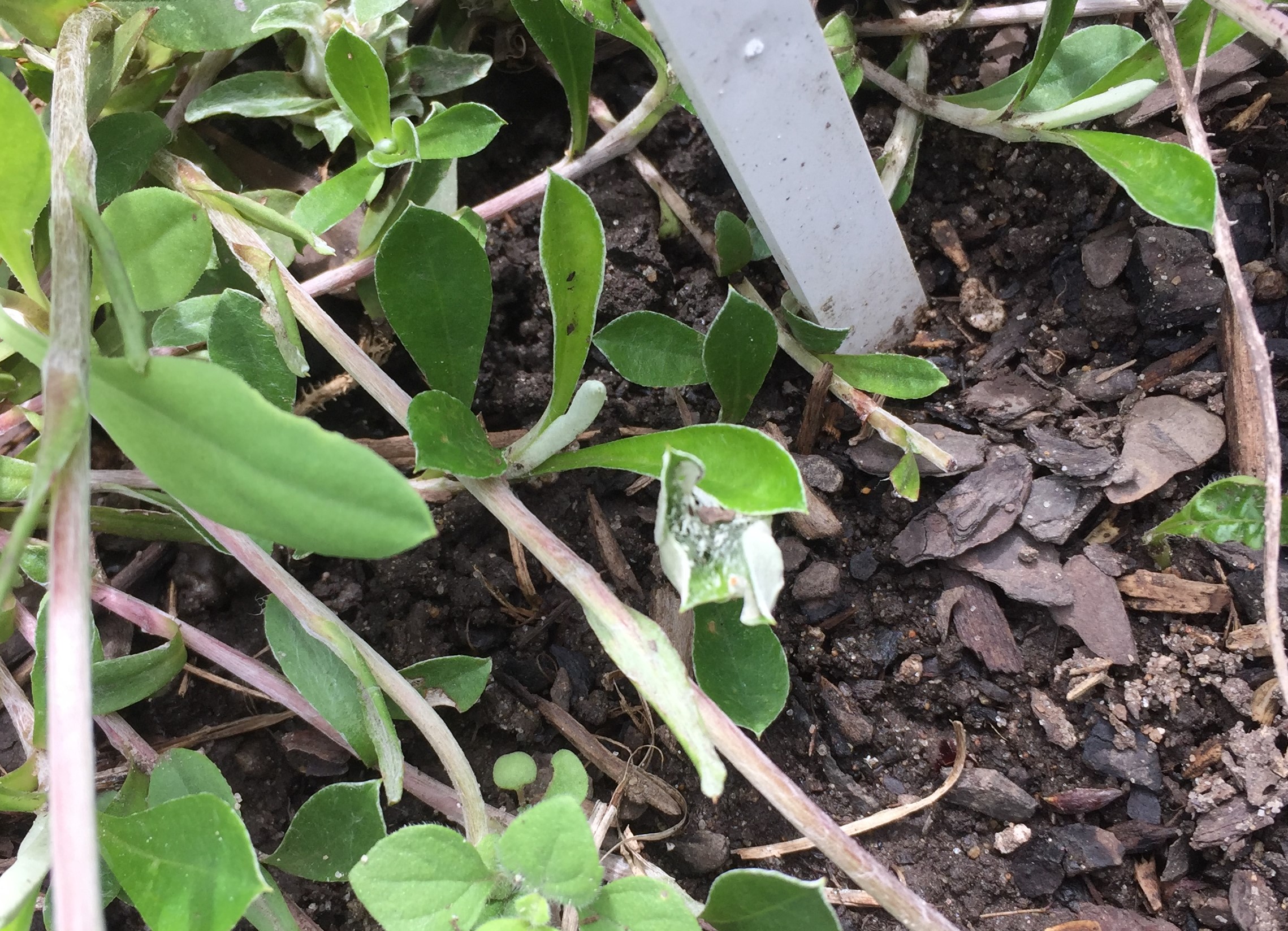 Since I saw the American Lady butterfly laying eggs on our pearly everlasting, I’ve been watching for caterpillars. They’ve hatched! To locate them, I look for webbed areas and frass (caterpillar poop). The caterpillars create little webbed shelters so they can hide from predators, like parents of baby birds. There are caterpillars on all the patches of pearly everlasting in the front and back. Interestingly, this year there are no eggs on the field pussytoes, another American Lady host plant. (Edited: I later found some on field pussytoes.)