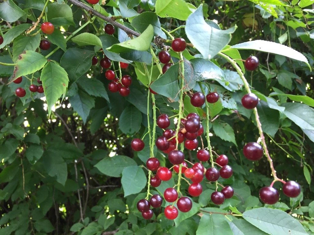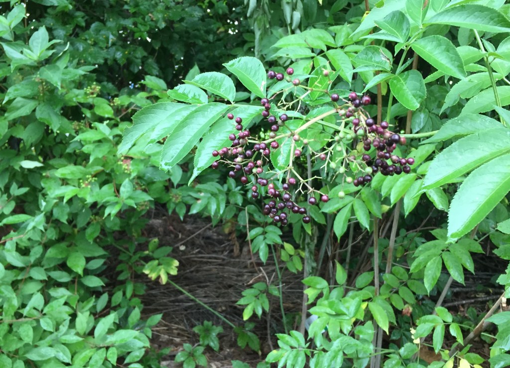 Gray Catbirds eat insects and berries, which is why they enjoyed the hedgerow. The native shrubs are host plants for hundreds of kinds of moths and butterflies; their caterpillars are an important bird food, especially for baby birds. Many of the shrubs also produce berries. We watched the Catbirds eating berries from a Serviceberry tree, Gray and Red Osier Dogwoods, and American Elderberry shrubs.