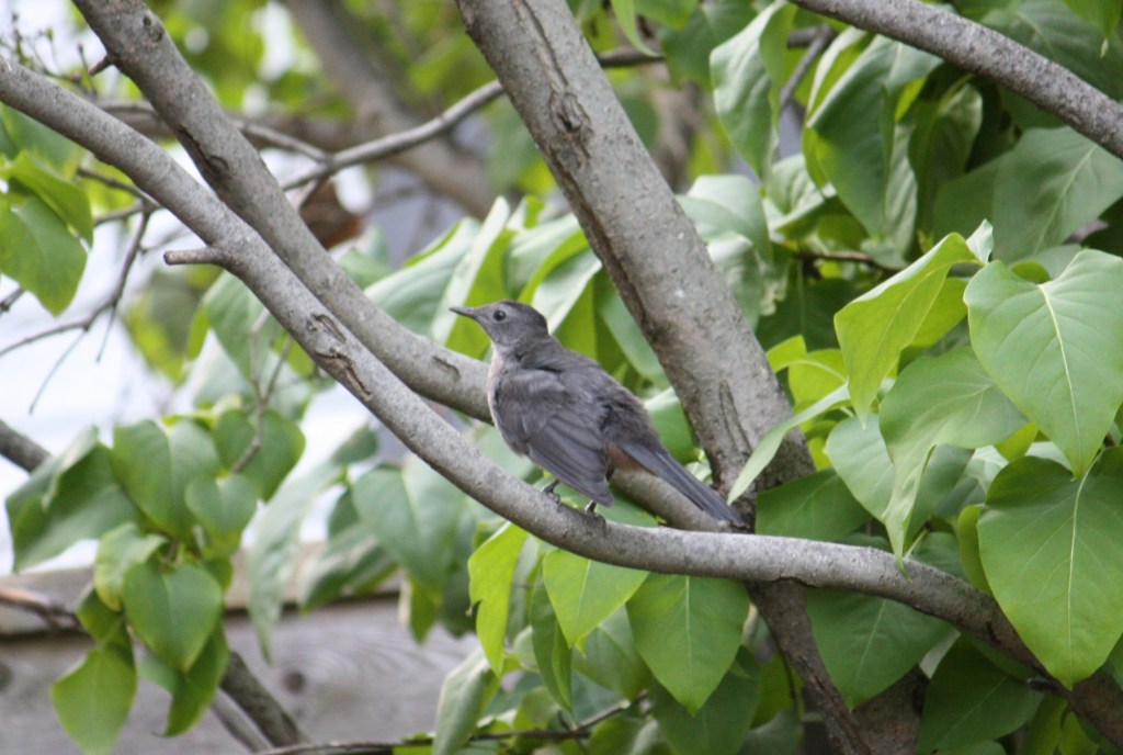 According to the Cornell University Ornithology Lab’s All About Birds, and the Audubon Society, Gray Catbirds live in dense tangles of shrubs, vines and small trees — just like our backyard hedgerow. I’m trilled to have successfully created a home for them in urban Ottawa. Like I always say, “plant it and they will come.”