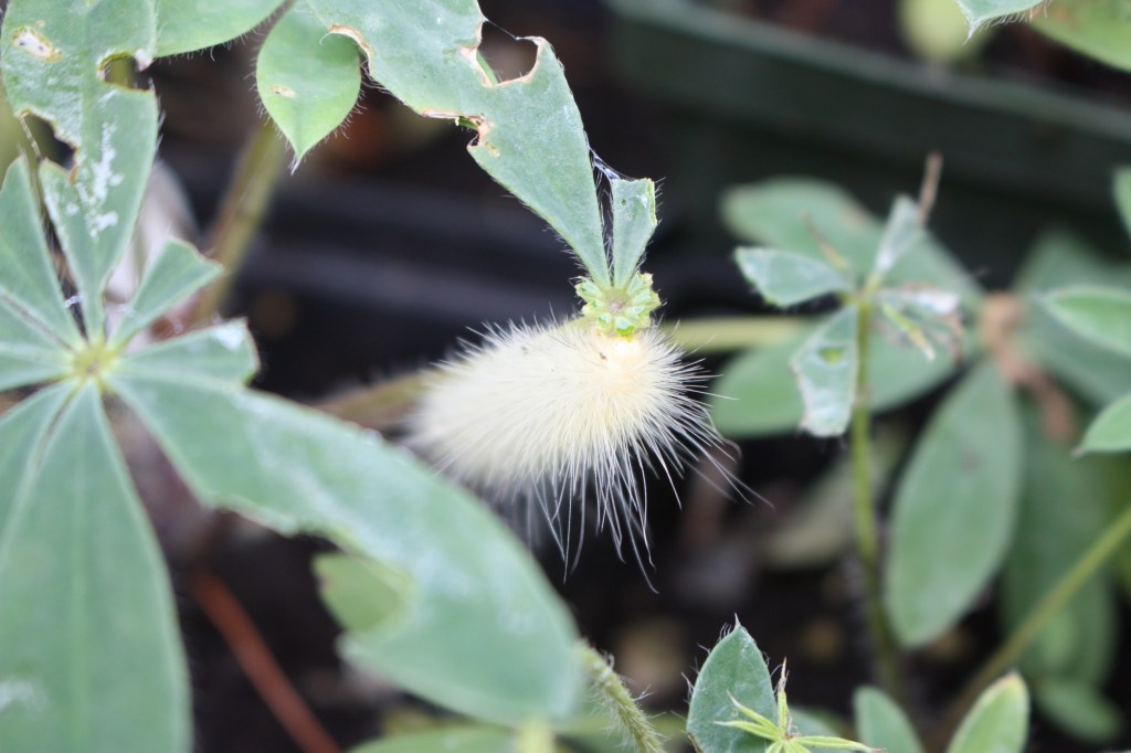 Many native perennials are host plants for moths and butterflies. My Wild Lupine seedlings, that were still sitting in pots, must have been very tasty because we found several kinds of caterpillars eating the leaves. The Catbirds were probably checking out my little potted plants because they housed soft, protein-packed snacks.