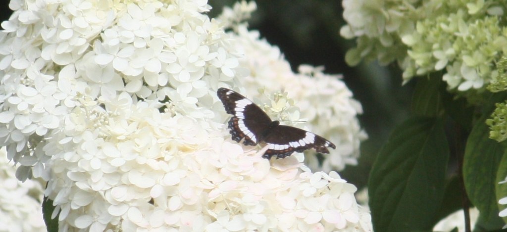 I only saw a White Admiral once. They lay eggs on a variety of shrubs and trees, such as the willow, birch, native cherries, and oak that are in our yard. The adult butterflies are also fans of sap, rotting fruit and animal droppings.