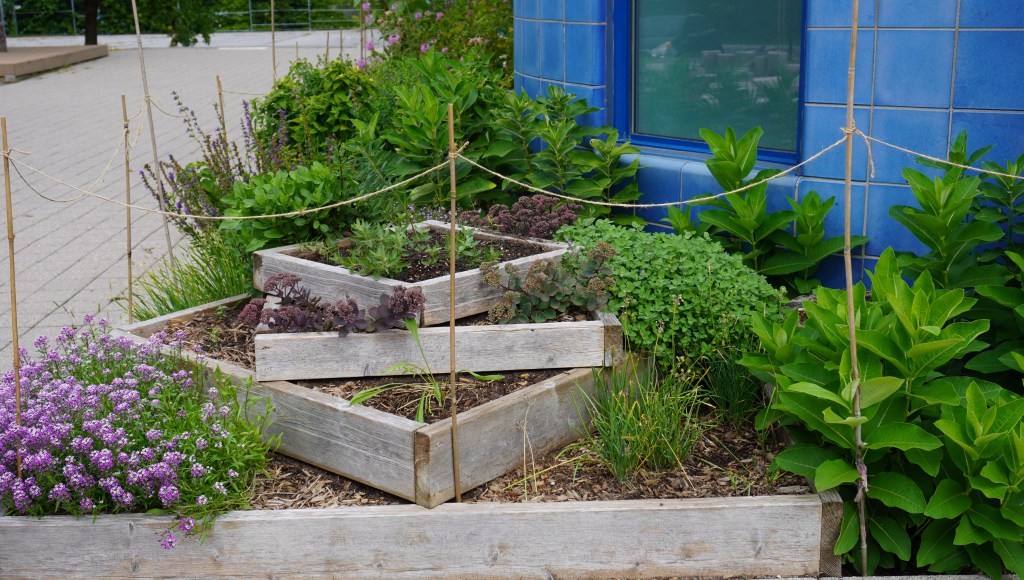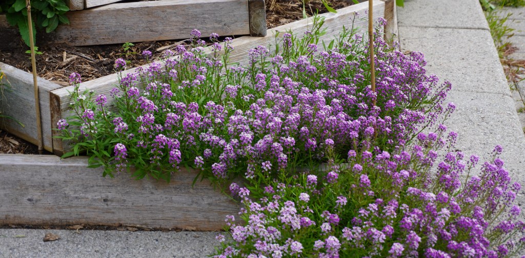 Luckily most of the annuals we included had self-seeded in the garden, such as Verbena bonariensis, Rocky Mountain Bee Plant, and purple Sweet Alyssum. This was great because we weren’t able to plant new annuals ourselves. Again, Mother Nature gave us a helping hand.