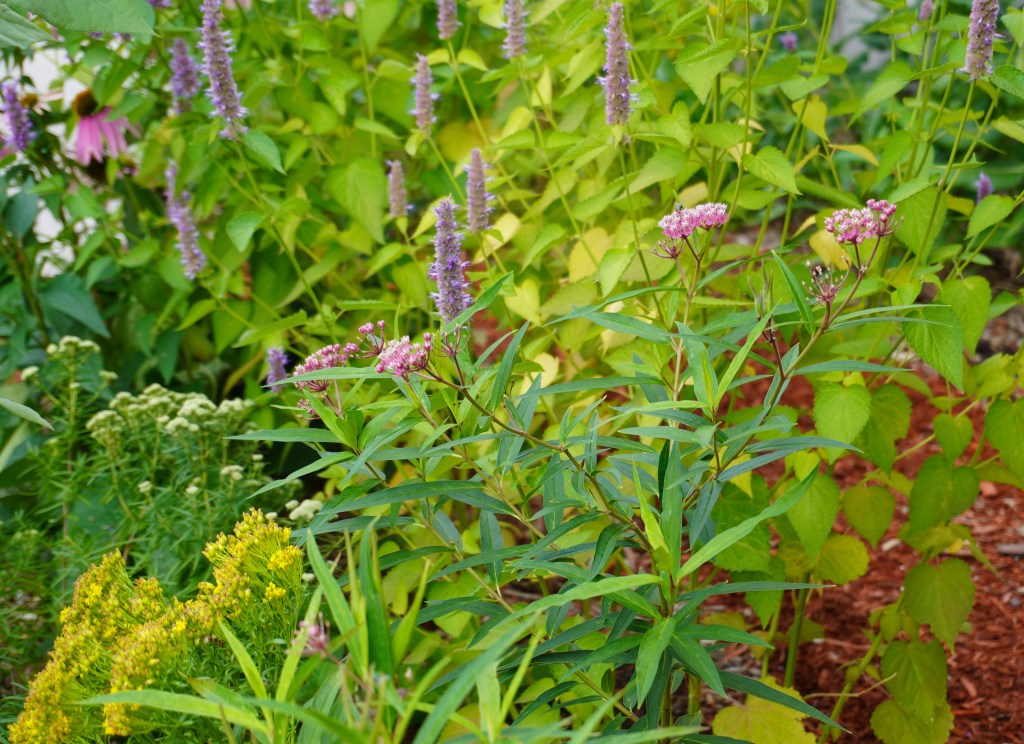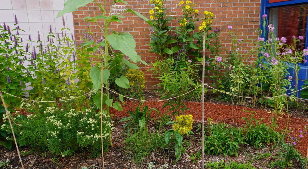 The Common Milkweed didn’t seem as pervasive this year. Its new plant neighbours are holding their own in the competition for space in the garden. Perhaps the Red Milkweed Bugs in the garden last year helped control this overly enthusiastic spreader; their larvae eat Common Milkweed roots.