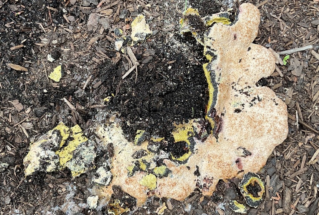According to thespruce.com: “It’s part of the protist, not fungi, kingdom. So it’s actually more closely related to an amoeba than a fungus. It is also known by another nickname—scrambled egg slime mold—because the fruiting body (the part you see) is light yellowish in color and looks a bit like scrambled eggs.”