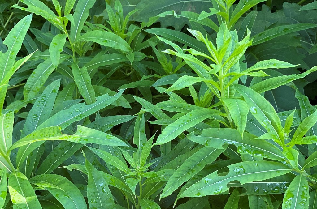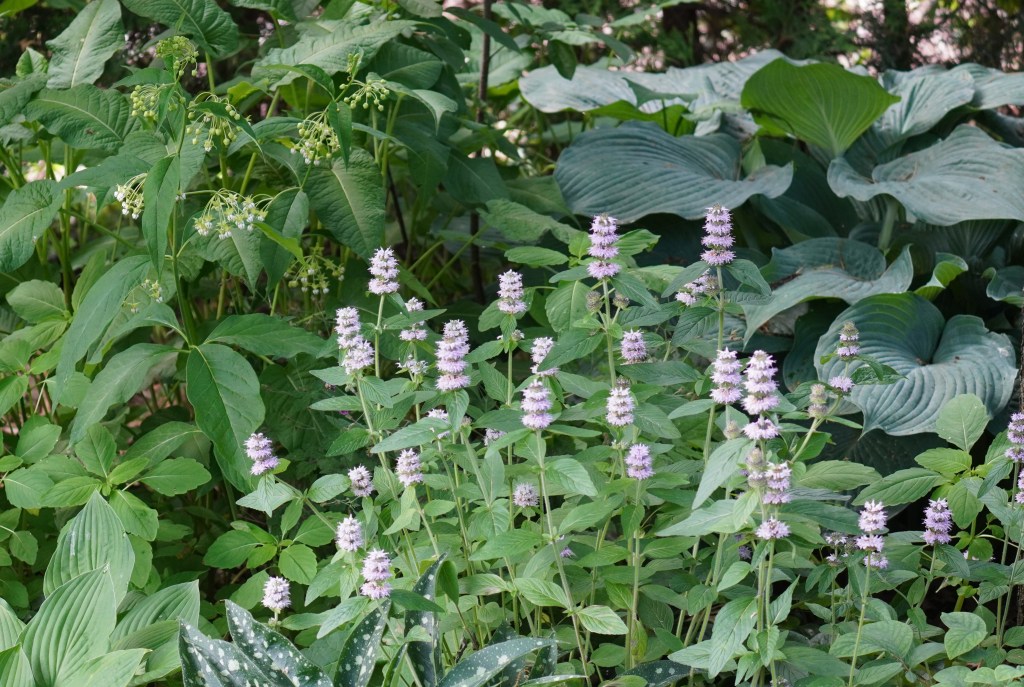 There aren’t many native plants blooming in the shade garden right now. I do have a few showy patches of Poke Milkweed (top left) and Downy Wood Mint (pale purple-blue spikes) though. Poke Milkweed (last photo) is a SW Ontario native. Non-native astilbes and coral bells are also blooming.