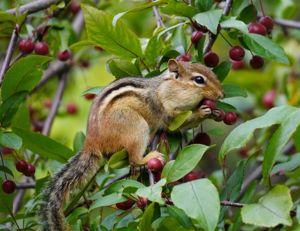 The resident Chipmunks are very busy gathering crabapples to store for the winter. I wonder how many crabapples they can stuff into their cheeks at once.