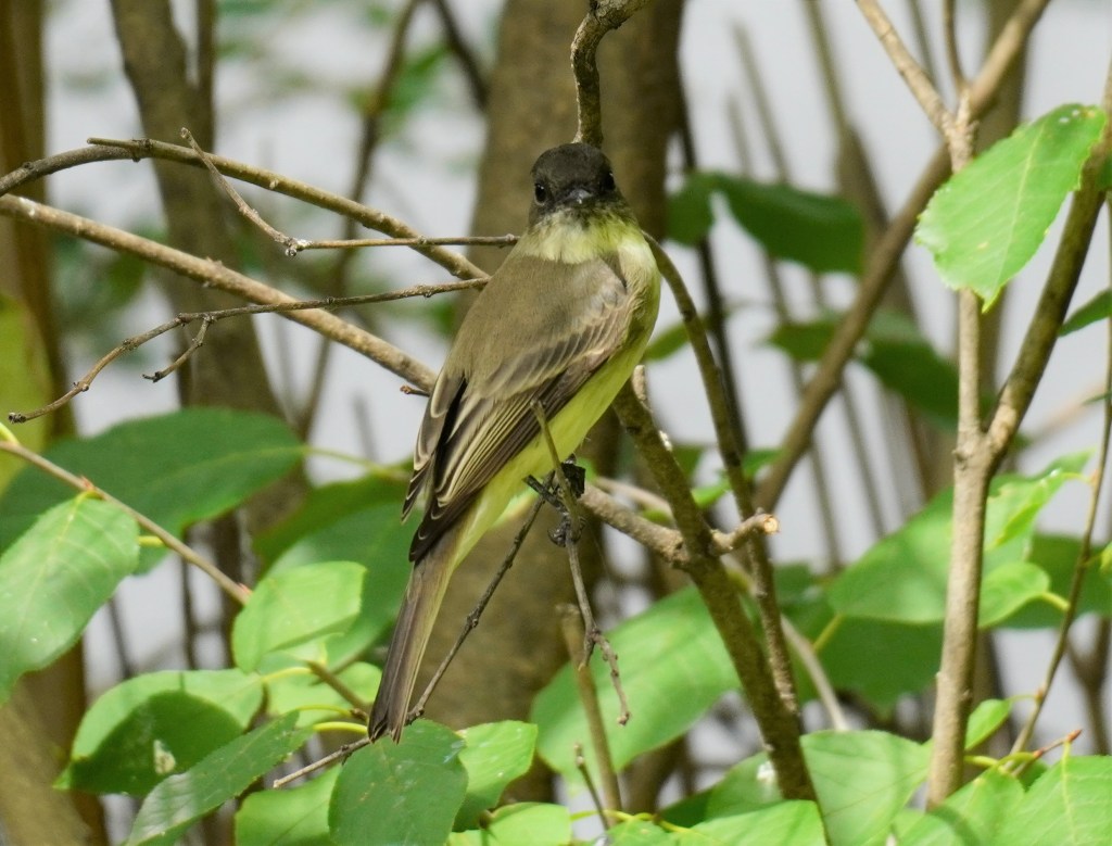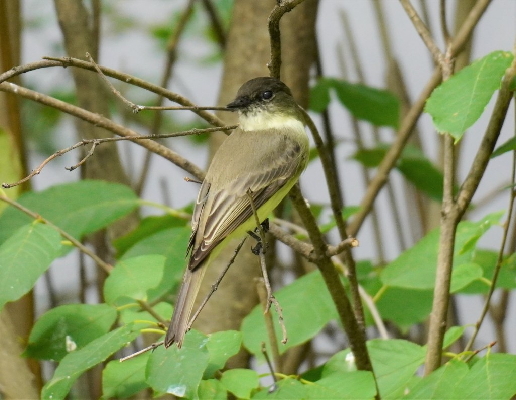 This Eastern Phoebe sat in the hedgerow looking for insects. I later watched it near the meadow swooping down to catch insects in flight.
