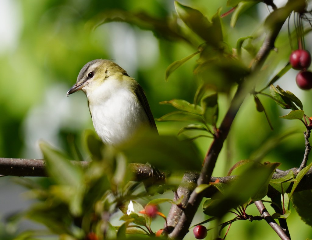 I was surprised to see this Red-eyed Vireo still hanging around the backyard. I added 5 more Red Osier Dogwoods to the yard this spring, so it may be eating the berries to fatten up for migration.