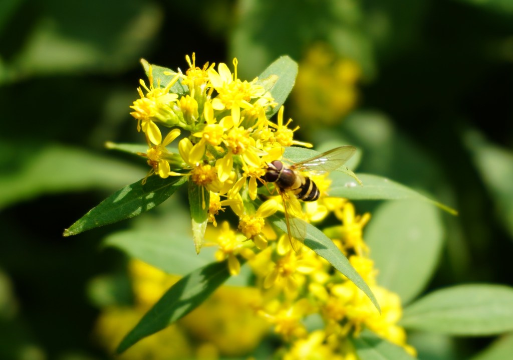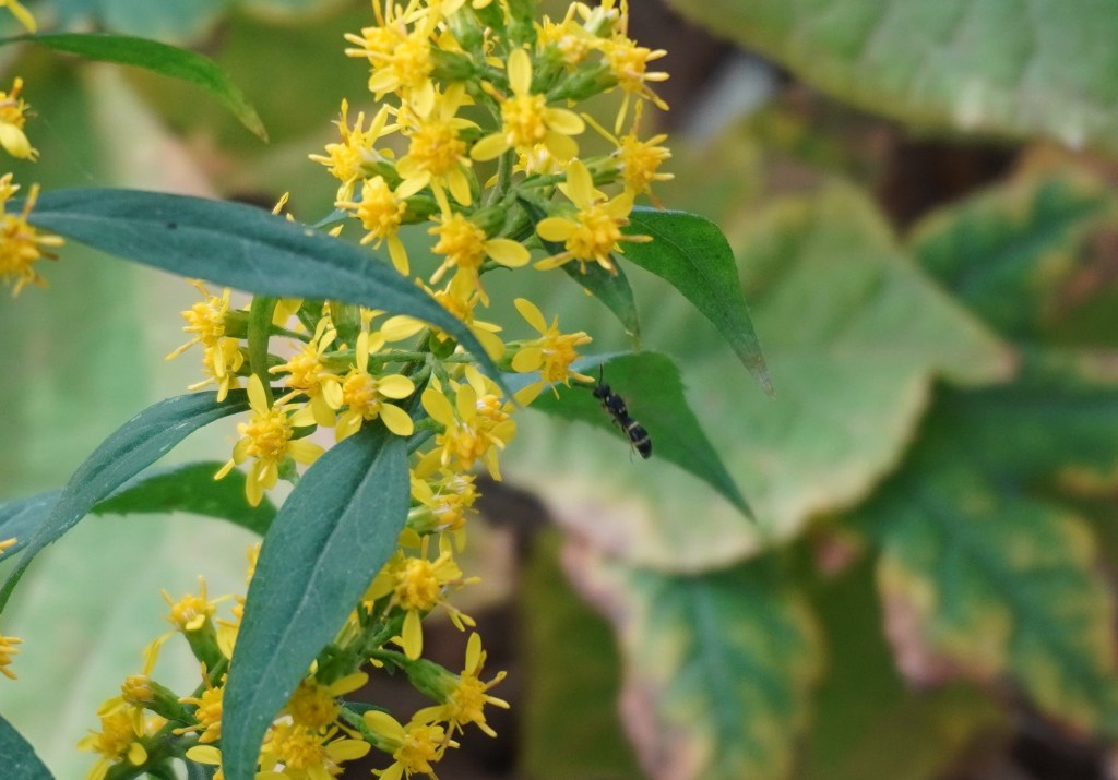 2020: My favourite goldenrod is Zigzag Goldenrod. It grows in dry shade to part-shade, and is covered in tiny yellow, fragrant stars that pollinators adore. Here are a few different insects that I found on my plants yesterday.