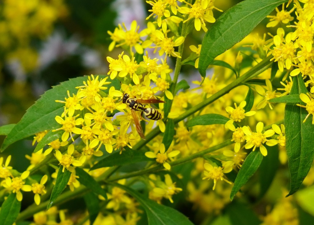 2022: Every year I take dozens of photos of pollinators on my Zigzag Goldenrod plants. It is still my favourite goldenrod because it blooms so late, is fragrant, and attracts such a variety of insects. Right now, a few of my Stiff Goldenrod plants that are in some shade, as well as Solidago Rugosa ‘Fireworks’ (aka Rough Goldenrod) are also blooming.
