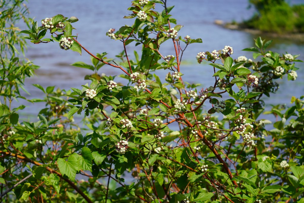 Red Osier Dogwood laden with berries at Petrie Island, Ottawa (July 10, 2022).