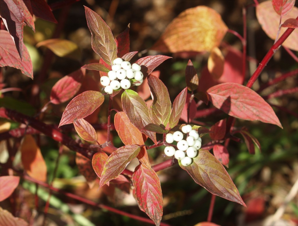 Red Osier Dogwood berries feed birds well into the fall. (October 2020 and 2022)