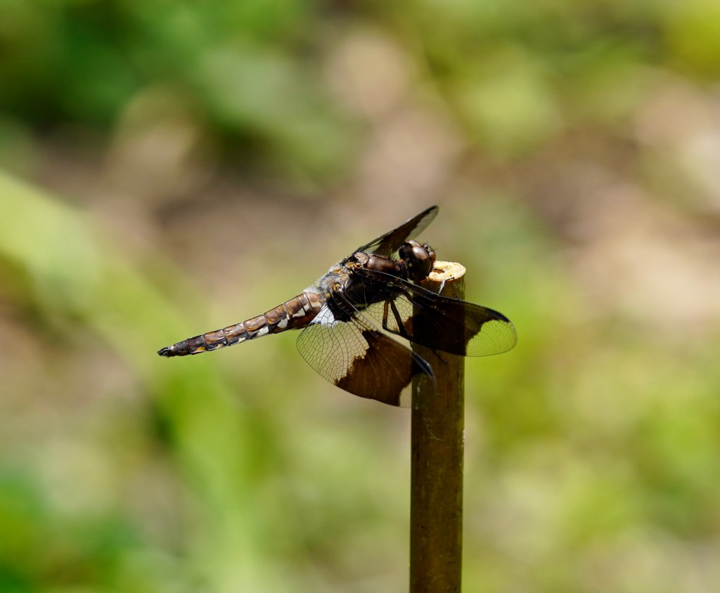 In June, we saw numerous dragonflies in the yard, especially near the pond. This Common Whitetail was hunting in the back of the yard, but stopped to perch on top of a bamboo pole.