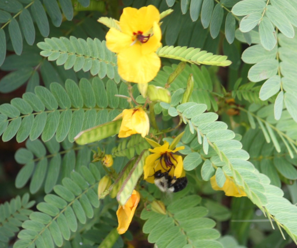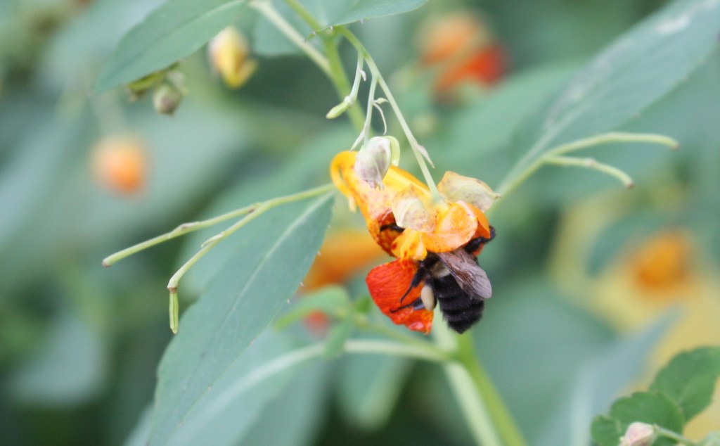 There are a couple of native annuals that I grow as well. Partridge Pea is a prairie annual. You can hear bumblebees using buzz pollination to release the pollen from these cheerful yellow flowers. Jewelweed is visited by bumblebees and hummingbirds, and requires moist soil in some shade.