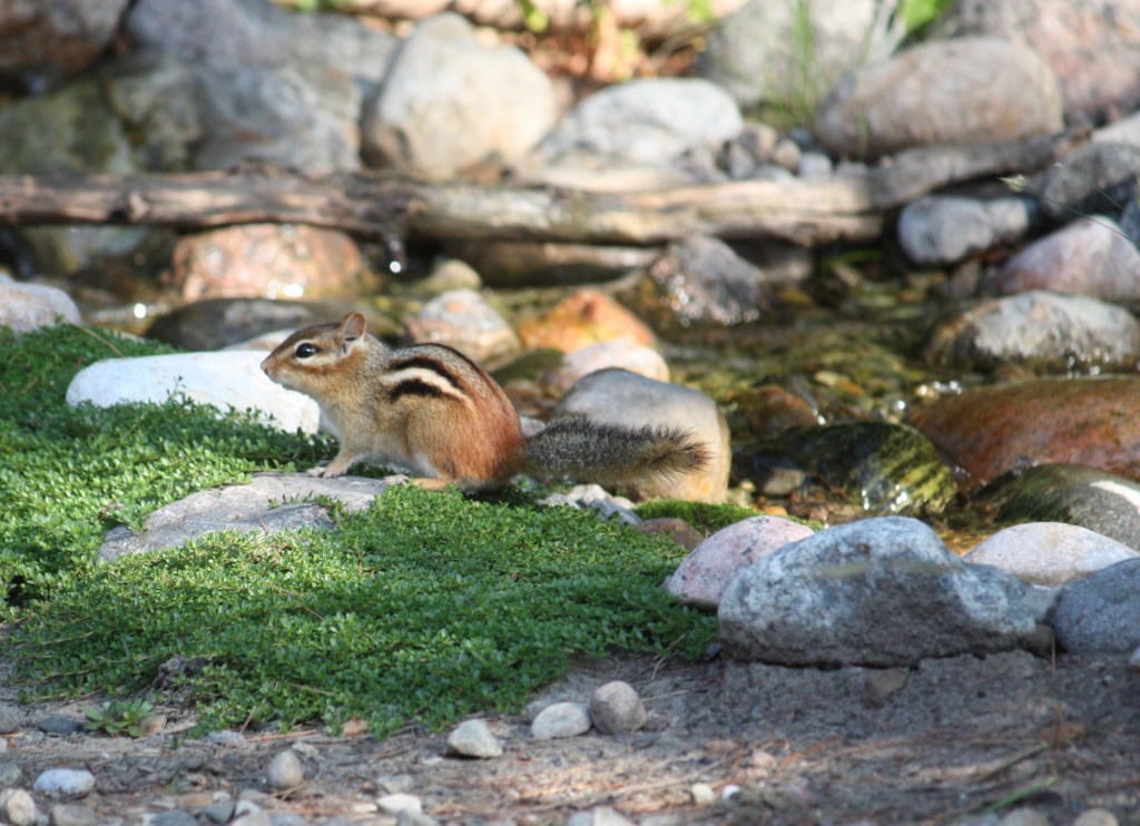 A charming Chipmunk moved into the terraced garden that is edged with a dry-stone, flagstone wall.