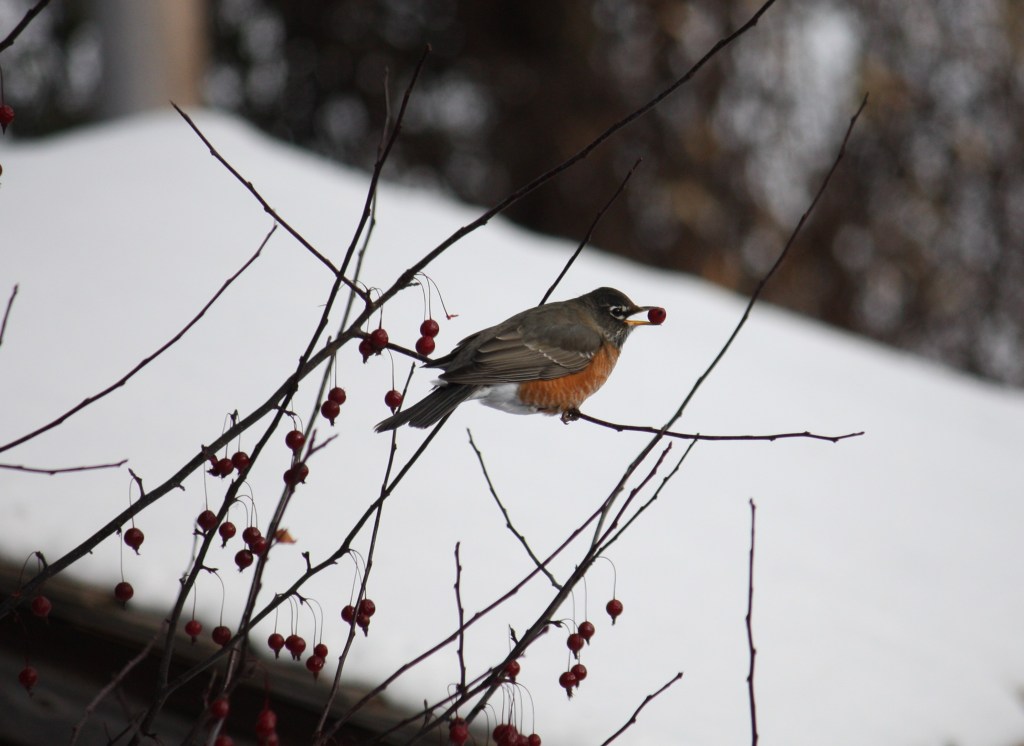 We’ve enjoyed the bird visitors so much that I began adding berry-producing native shrubs throughout our front and back yards, including a mixed hedgerow along our back fence. As I’ve learned about native shrubs and trees, I realized that bird droppings had already planted native Chokecherries and Hawthorns along the fence. So far I’ve added Gray Dogwood, Elderberry, Nannyberry viburnum, Pussy Willow, Wild Plum, and Hop Tree. A few of these shrubs also host butterfly and moth caterpillars. I hope that the hedgerow will provide nesting habitat and food for our feathered friends.